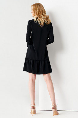 Черное платье женское - элегантный и в то же время строгий наряд для торжественных мероприятий. Его можно надеть на корпоратив, День Рождение, юбилей или свадьбу друзей. Платье женское вечернее короткое украшено однослойной оборкой, задрапированной мелкими складками у линии подола. Длинные рукава с кулиской на резинке гармонично сочетаются с оборкой.