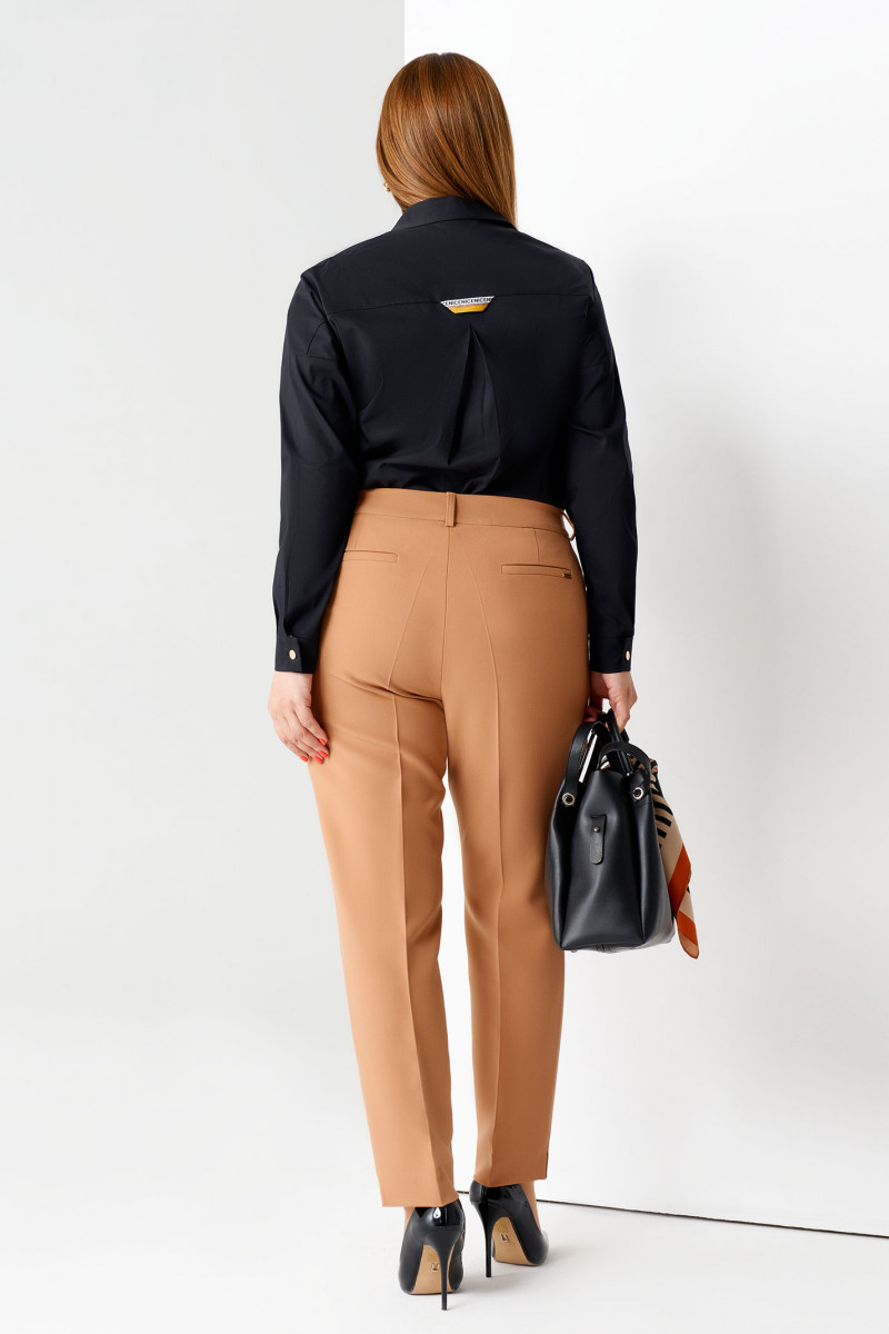 Аккуратные линии кроя, в минималистичном стиле- и вы выглядите лаконично и стильно, брюки из поливискозной ткани . Классические брюки в боковых швах по переду карманы, с отрезным поясом на петли пуговицы, застежка на тесьму-молнию. На задних частях брюк имитация кармана. Стильные брюки в " деловом стиле"- шикарное решение для безупречных модных луков, можно одеть в самых разных ситуациях.