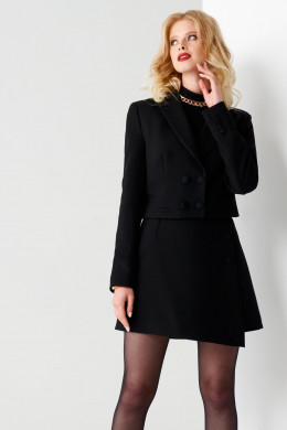 Стильный комплект состоящий из укороченного жакета и асимметричной юбки из поливискозной ткани . Жакет полуприлегающего силуэта, с воротником , с нагрудными вытачками, с двухбортной застежкой на петли пуговицы, с боковыми декоративными рамками. Спинка с талиевыми вытачками и среднем швом. Руква втачные , со шлицей и пуговицами. Юбка трапециевидного силуэта, с поясом на талии и асимметричной деталью, с декоративными пуговицами вдоль шва. На заднем полотнище талиевые вытачки, в боковом шве молния . Комплект идеален для офиса, на работу и любого празднования, комплект позволяет создавать привлекательные луки в каждом отдельном случае.