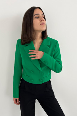 Элегантный жакет женский - модная вещь для работы и особых случаев. Укороченные жакеты стали хитом сезона, и эта модель не исключение! Приталенный жакет женский трикотажный с английским воротником позволит создать стильные и женственные образы с юбками, широкими брюками, кожаными шортами и даже джинсами.