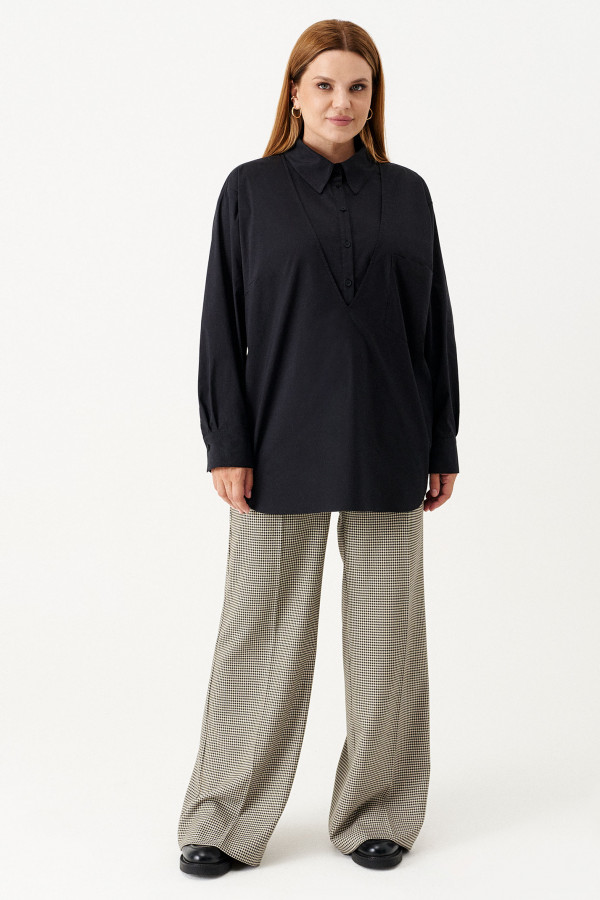 Черное платье женское с коротким рукавом и круглым вырезом горловины. На линии талии нет горизонтального шва, который искажает фигуру, благодаря чему создает визуальный эффект длинных ног. Диагональные вытачки оставляют трикотажное платье женское свободным в области талии. Приталенный фасон мягко облегает фигуру и скрывает мелкие недостатки. Платье-футляр женское застегивается при помощи молнии на спинке.