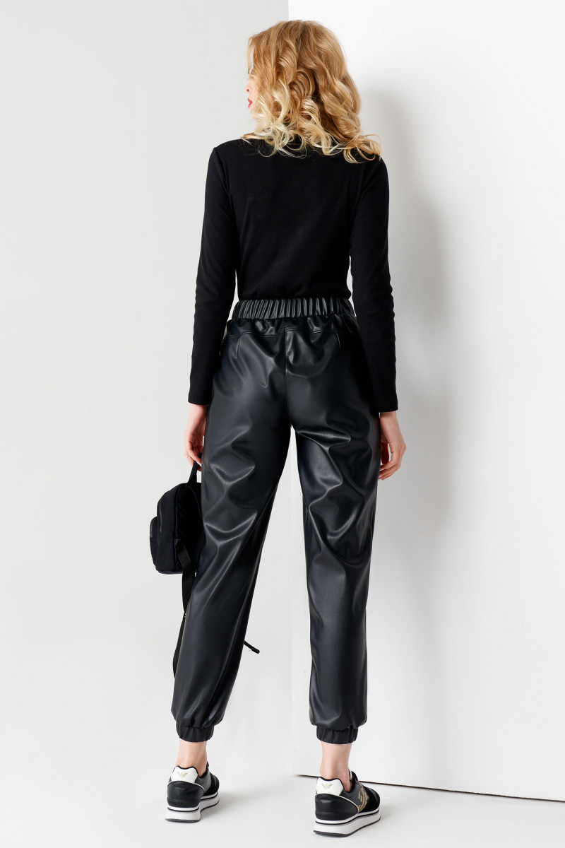 Брюки женские трикотажные свободного кроя сделают ваши ножки визуально ровнее и длиннее, а фигуру - выше и стройнее. Модный предмет гардероба дополнен притачной присборенной манжетой по низу штанин. Брюки на резинке женские имеют прорезные карманы в боковых швах. Сзади модель скроена с декоративной кокеткой и вытачками.