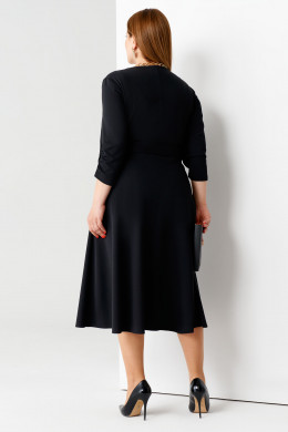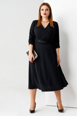 Нарядное платье из очень эластичной ткани. Платье отрезное по талии, нижняя часть платья юбка расширенная. Лиф платья имитирует запах, имеет рельефные швы, идущие от проймы до подреза по талии. Рукава длиной чуть ниже локтя, по низу декоративная сборка. Платье дополнено съёмным поясом на пряжку из основной ткани. Отличный нарядный вариант платья.