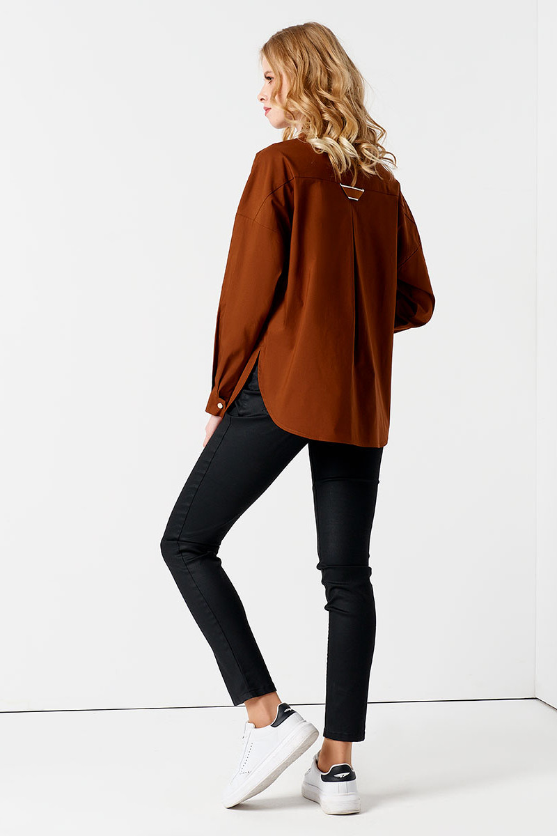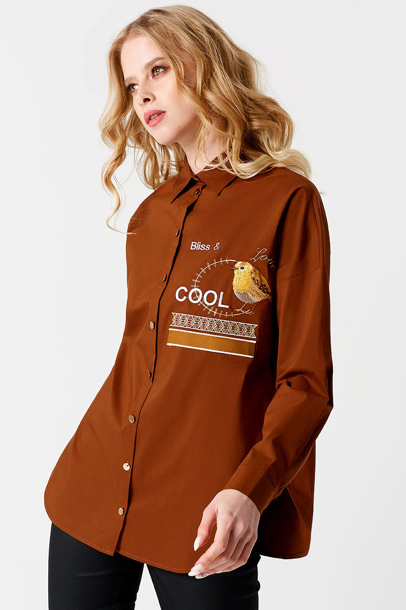 Эффектная блузка из хлопковой ткани, свободного силуэта, акцент сделан на дизайнерскую вышивку, с центральной застежкой на петли пуговицы, линия плеча спущенная, рукава длинные с притачной манжетой, линия низа фигурной формы. Спинка с кокеткой, встречной складкой от нее и декаративной тесьмой, линия низа фигурной формы. Все эксперименты с блузкой априори будет выглядеть стильно и непревзойденно, благодаря оригинальному крою создаст потрясающий образ для уверенной в себе девушке.