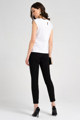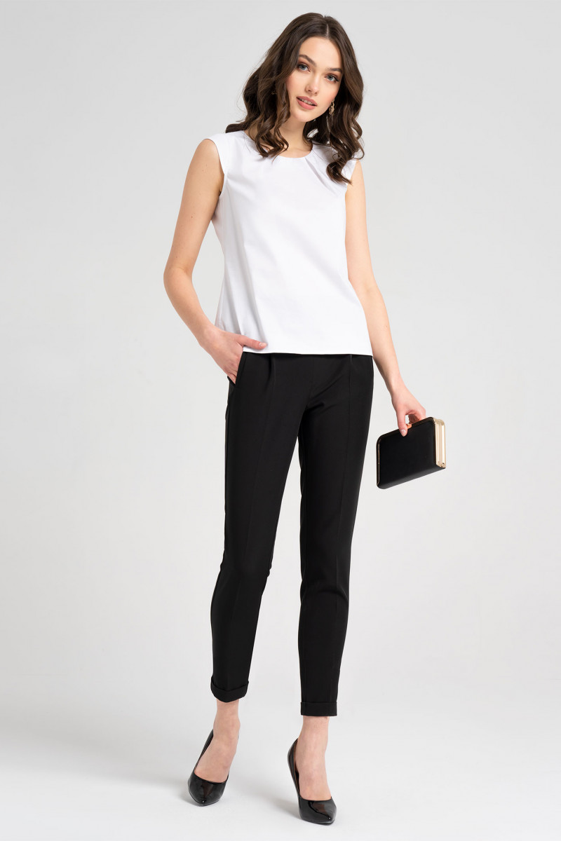 Стильная лаконичная блузка из хлопковой ткани. Блузка полуприлегающего силуэта, с круглым вырезом горловины с застежкой по спинке на навесную петлю и пуговицу. Рукава коротние формы "крылышко". По переду по горловине имеются декоративные складки, по бокам небольшие разрезы. Отличный вариант блузки для офиса.
