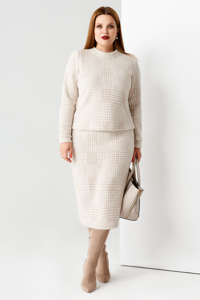 | 48 | Джемпер: Длина изделия - 54,5см, Длина рукава - 61,5см, Ширина плеча - 9см, Ширина по груди - 51,5см, Ширина по низу - 53,5см, Ширина рукава - 17,7см; Юбка: Длина изделия - 71,5см, Ширина по бедрам - 51,5см, Ширина по талии - 37,5см; |