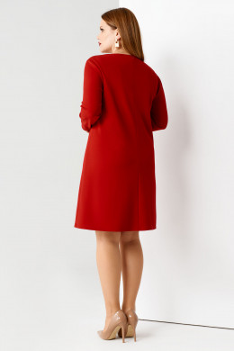 Офисное платье создано в свободном, расширенном фасоне. Оно не обтягивает силуэт, изысканно маскируя его несовершенства. Изделие скроено с округлым вырезом горловины и длинным втачным рукавом, изящно открывающим красивые запястья. Платье женское длиной до колена без проблем скроет массивные бедра, акцентируя внимание на стройных голенях.