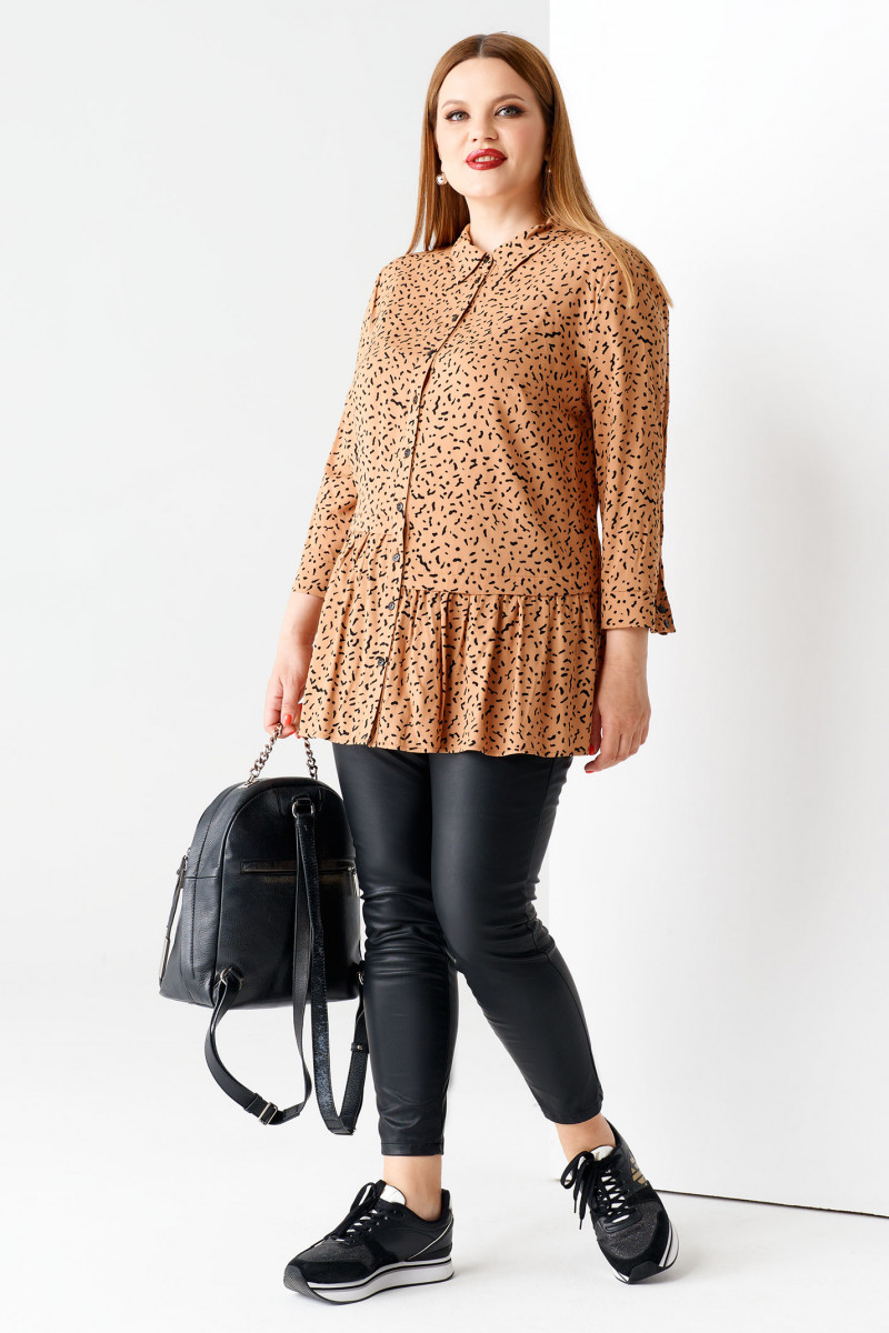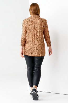 Эффектная,очень комфортная блузка из вискозы с графичным принтом прекрасно дополнит гардероб современной энергичной девушки. Блузка удлинённая и очень хорошо смотрится с узкими брюками или джинсами. Застёжка спереди центральная на планку с петлями и пуговицами. Воротник рубашечный,отложной,на стойке.Рукава втачные . Длина рукава 7/8 .По низу притачен манжет, который можно отложить вверх. По переду выполнены горизонтальные резы с оформленными в них сборками. Блузка подчёркивает достоинства фигуры и выглядит очень стильно.