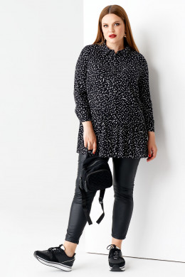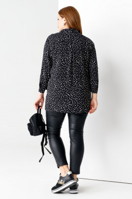 Эффектная,очень комфортная блузка из вискозы с графичным принтом прекрасно дополнит гардероб современной энергичной девушки. Блузка удлинённая и очень хорошо смотрится с узкими брюками или джинсами. Застёжка спереди центральная на планку с петлями и пуговицами. Воротник рубашечный,отложной,на стойке.Рукава втачные . Длина рукава 7/8 .По низу притачен манжет, который можно отложить вверх. По переду выполнены горизонтальные резы с оформленными в них сборками. Блузка подчёркивает достоинства фигуры и выглядит очень стильно.