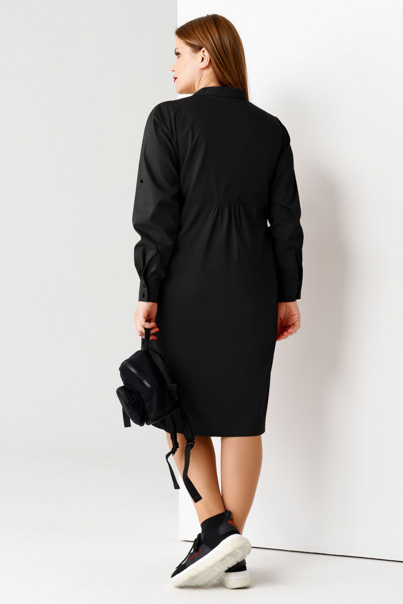 Молодежное платье из натуральной хлопковой ткани. Платье свободного кроя, с воротником, с застежкой на петли и пуговицы на планке, длиной до коленей. Рукава длинные втачные, по низу манжеты с петлями и пуговицами. В боковых швах и на груди карманы. Отличный вариант для отдыха и повседневных дней.