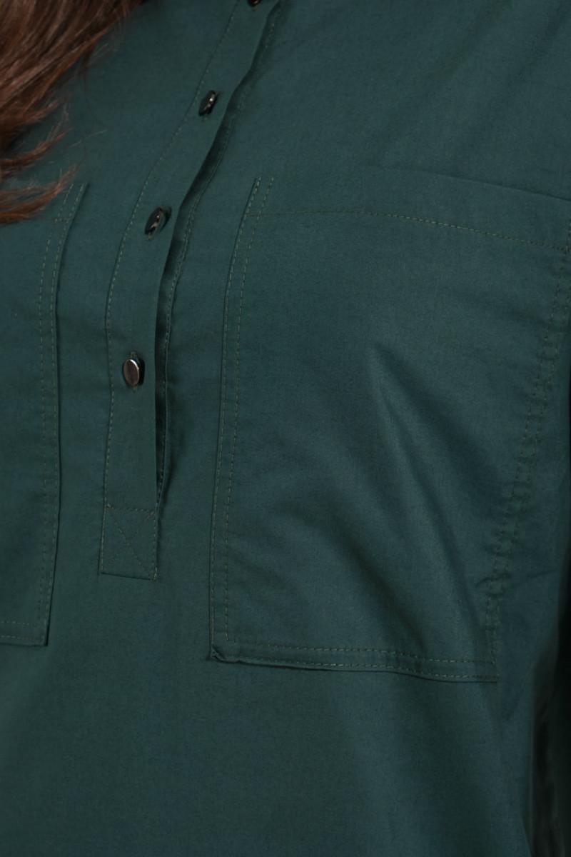 Молодежное платье из натуральной хлопковой ткани. Платье свободного кроя, с воротником, с застежкой на петли и пуговицы на планке, длиной до коленей. Рукава длинные втачные, по низу манжеты с петлями и пуговицами. В боковых швах и на груди карманы. Отличный вариант для отдыха и повседневных дней.