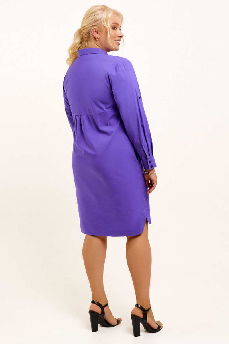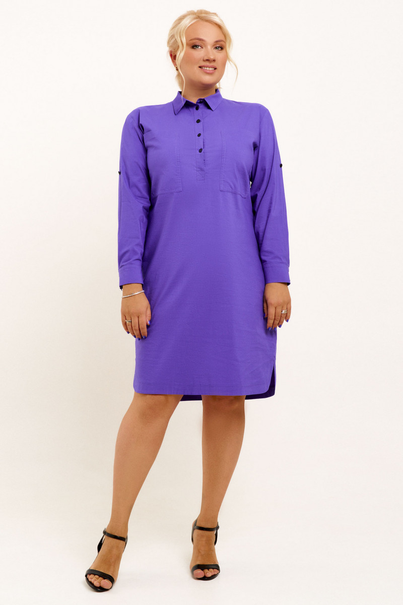 Молодежное платье из натуральной хлопковой ткани. Платье свободного кроя, с воротником, с застежкой на петли и пуговицы на планке, длиной до коленей. Рукава длинные втачные, по низу манжеты с петлями и пуговицами. В боковых швах и на груди карманы. Отличный вариант для отдыха и повседневных дней.