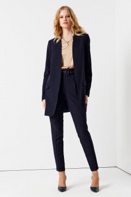 Стильный модный жакет. Это повседневный удобный и практичный жакет, который отлично сочетается как с джинсами, так и с брюками. Жакет удлиненный, без застежки, рукава длинные. По переду имеются карманы с клапаном. Жакет на подкладки.