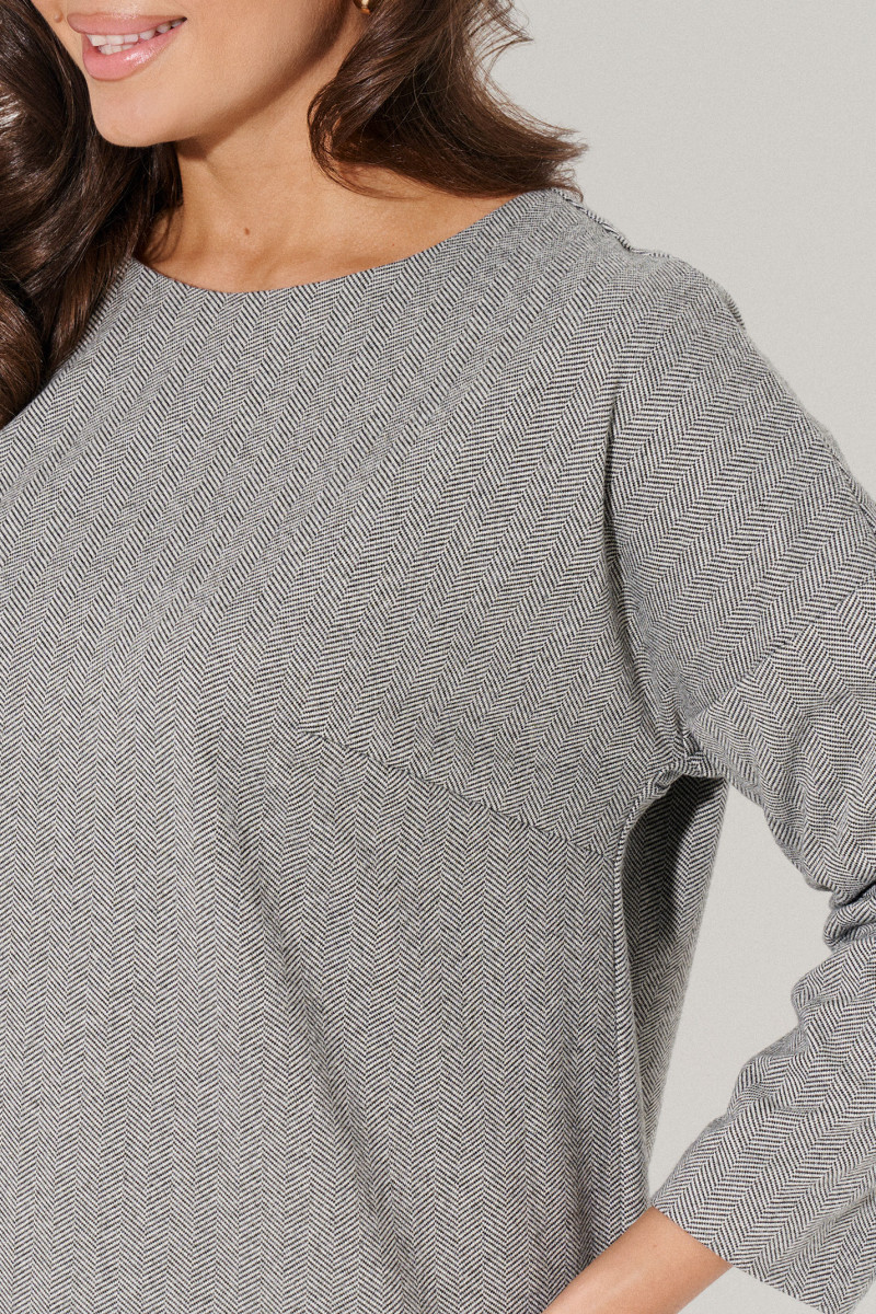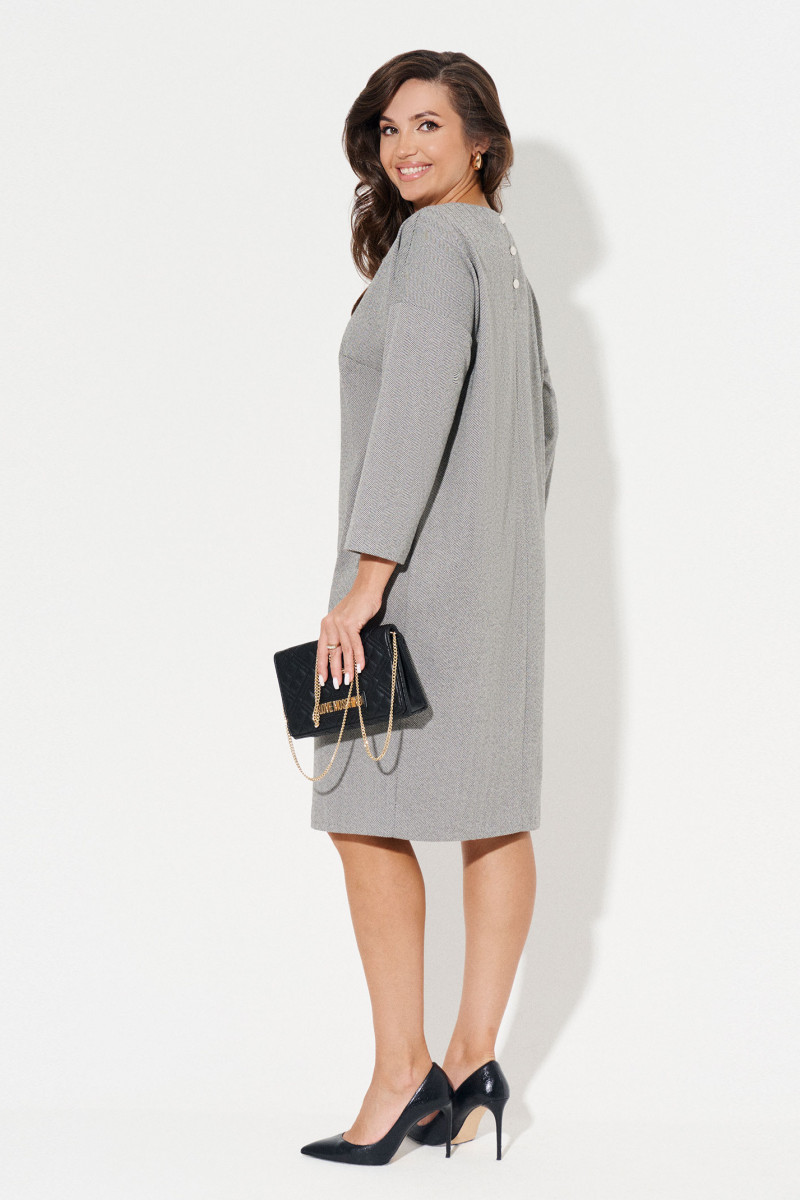 Платье женское офисное украшено классическим принтом елочка, придающим строгость элегантному образу. Спущенный рукав визуально сглаживает линию плеч. Благодаря нему ткань не собирается в области подмышек.