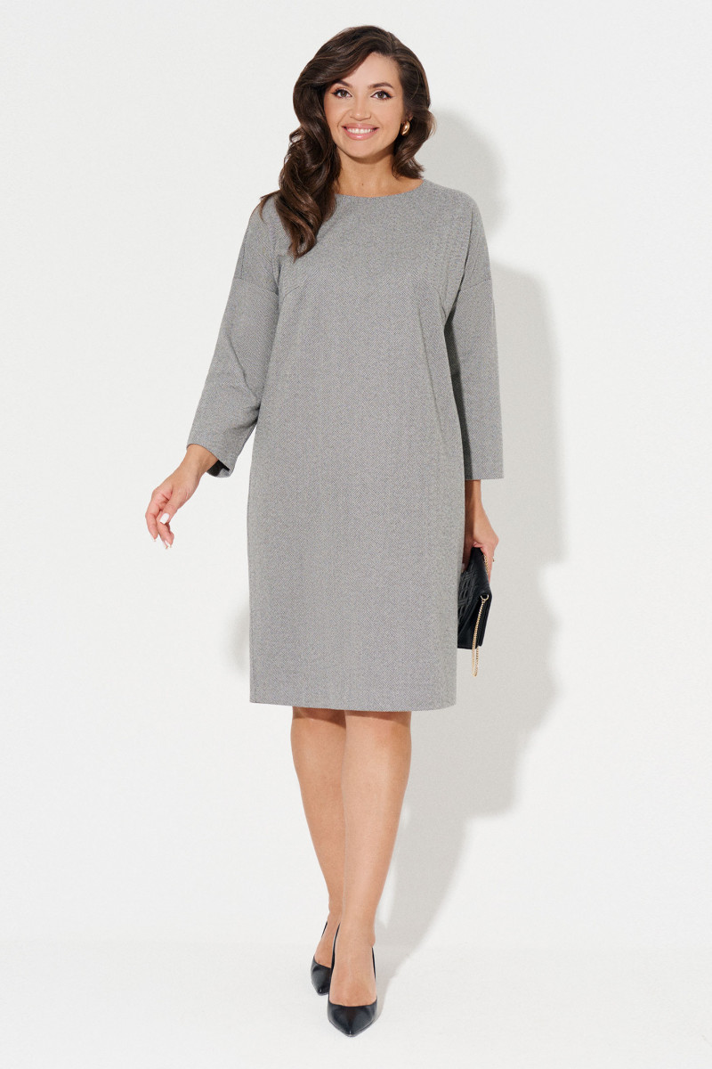 Теплое платье женское изготовлено из комфортной, не мнущейся ткани. Оно выполнено в прямом фасоне, облегающим бюст благодаря нагрудным вытачкам. Цельнокроенное платье-миди с круглой горловиной дополнено длинным рукавом и декоративной брошкой.