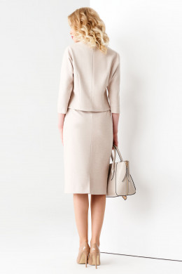 Юбка и жакет изготовлены из мягкого и плотного трикотажа, обладающего шелковистой и приятной на ощупь текстурой. Верх с круглой горловиной украшен вытачками, создающими облегающий силуэт. Рукав ¾ с притачным манжетом и фасоном «летучая мышь», скрывает покатые плечи и тонкие руки. Костюм, в который входит юбка и пиджак, всегда уместен на деловой встрече, в офисе, на корпоративе в ресторане или торжественном мероприятии по особу случаю. Женский костюм с юбкой подойдет и для повседневной носки, если вы предпочитаете вещи в классическом стиле.