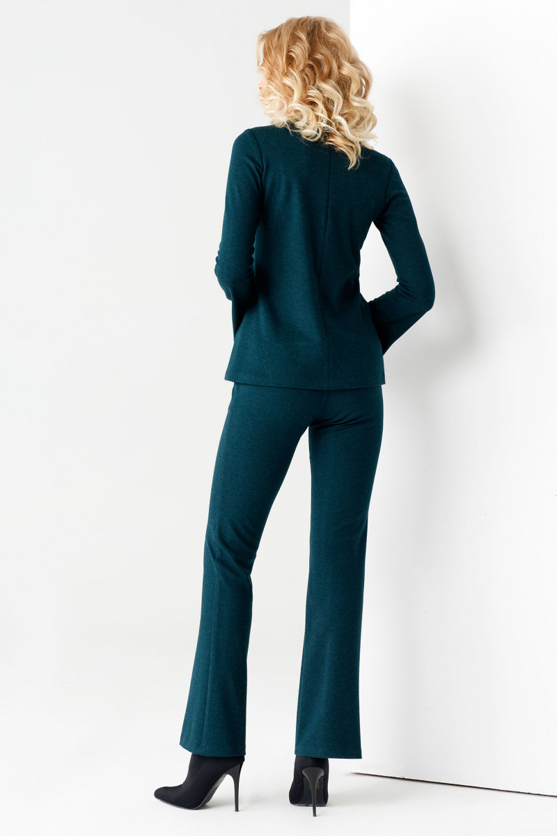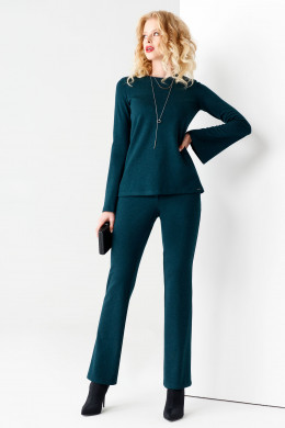 Женские брюки и джемпер в роскошном темно-зеленом оттенке можно комбинировать как с классическими ботинками или сапогами на каблуке, так и с массивной обувью. Классическая женская одежда будет стильно смотреться в расслабленном образе с кроссовками. Купить костюм можно для офиса, деловых ланчей или свиданий.
