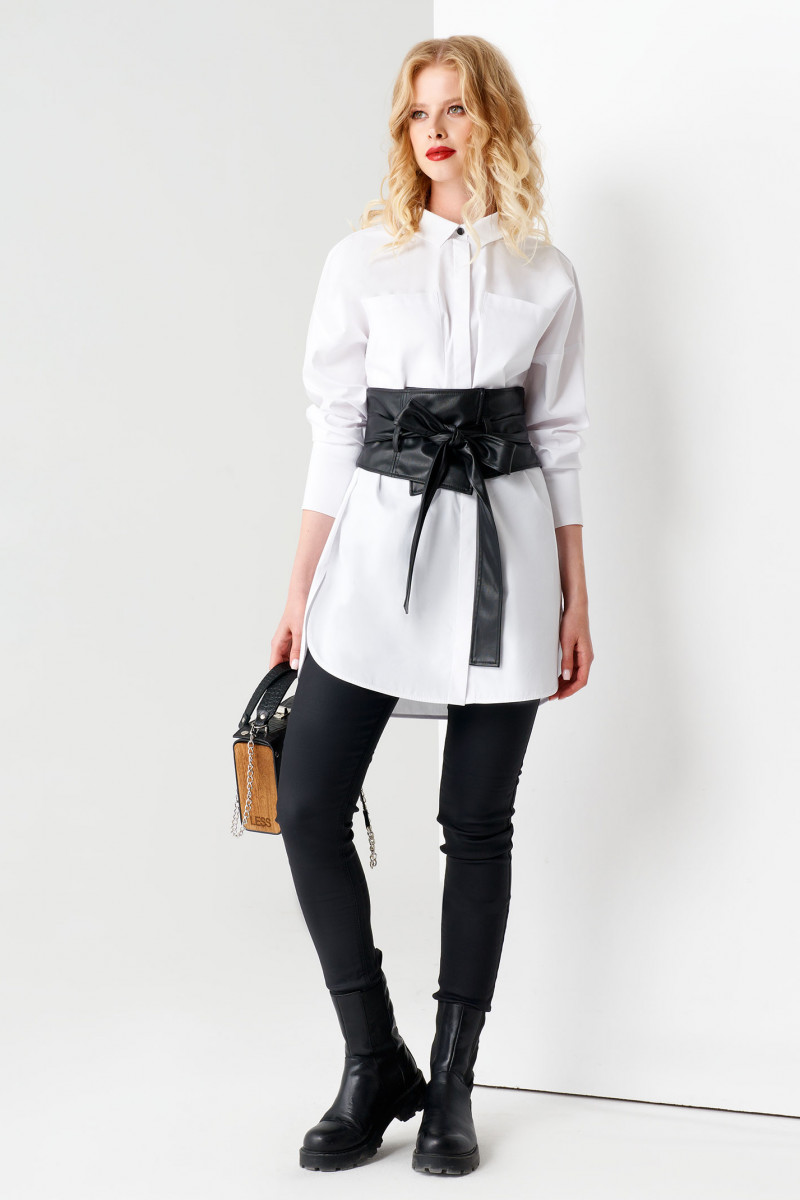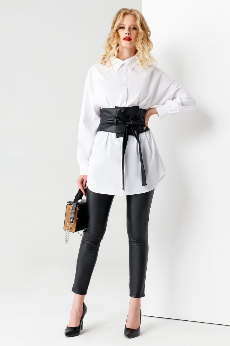 Блузка женская белая с длинным рукавом станет неотъемлемой частью вашего делового гардероба. Она пошита из приятной на ощупь хлопковой ткани, поэтому не накапливает статическое электричество. Блузка с поясом органично сочетается с брюками, джинсами, лосинами, леггинсами. Удлиненный приталенный силуэт постепенно расширяется к низу и заканчивается фигурным краем.