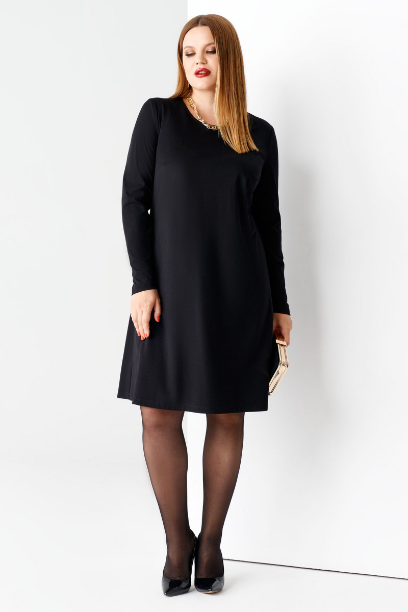 Лаконичное платье из трикотажной ткани. Платье расширенного силуэта, с длинными рукавами, с круглым вырезом горловины. По переду имеются нагрудные вытачки. Такое платье легко дополнить аксессуарами и беспроигрышный вариант как для торжественного мероприятия, так и на каждый день.