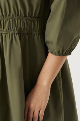 В составе ткани, из которой пошито платье, хлопок скомбинирован с небольшим количеством эластичных волокон. Это придает материалу прочность и обеспечивает безупречно гладкую поверхность.