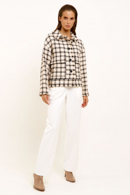 Жакет из хлопковой ткани на подкладке. Жакет прямого силуэта с центральной застежкой на петли пуговицы, край воротника , край застежки и линия низа обработан декоративной тесьмой из основной ткани, с накладными боковыми карманами и клапанами . Спинка прямая. Рукава втачные длинные, край рукава обработан декоративной тестмой из основной ткани, такая вещь станет незаменимым элементом вашего гардероба.