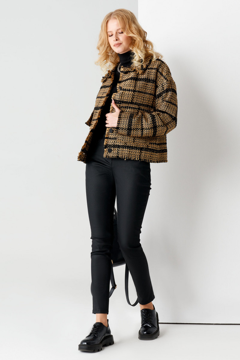 Жакет в клетку - трендовая вещь, которая украсит ваш гардероб. Модель из принтованного трикотажа смотрится оригинально. Используйте ее для составления необычных сетов с юбками, брюками, джинсами, дополняйте образ подходящими аксессуарами - и всегда будете выглядеть неотразимо. Демисезонный теплый жакет женский на подкладке защитит вас от прохладного ветра и сквозняка.
