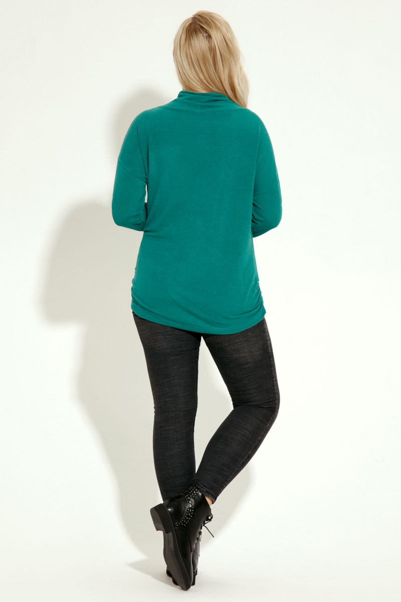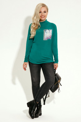 Девушки, предпочитающие уютную одежду, обязательно оценят трикотажный джемпер. Модельеры предлагают интерестный вариант, вся изюминка в силуэте- это его лаконичность и декорированная фото-печать. Джеипер длиной до линии бедер,по линии низа в боковых швах сборка, со спущенной линией плеча, по горловине сборка, рукава длинные. Удобная одежда из денима отлично подходит для городской, динамичной жизни.