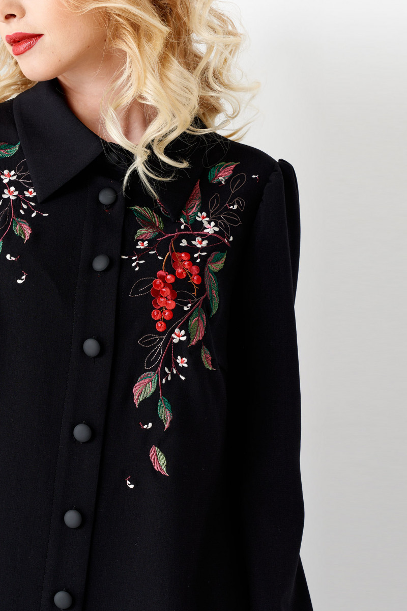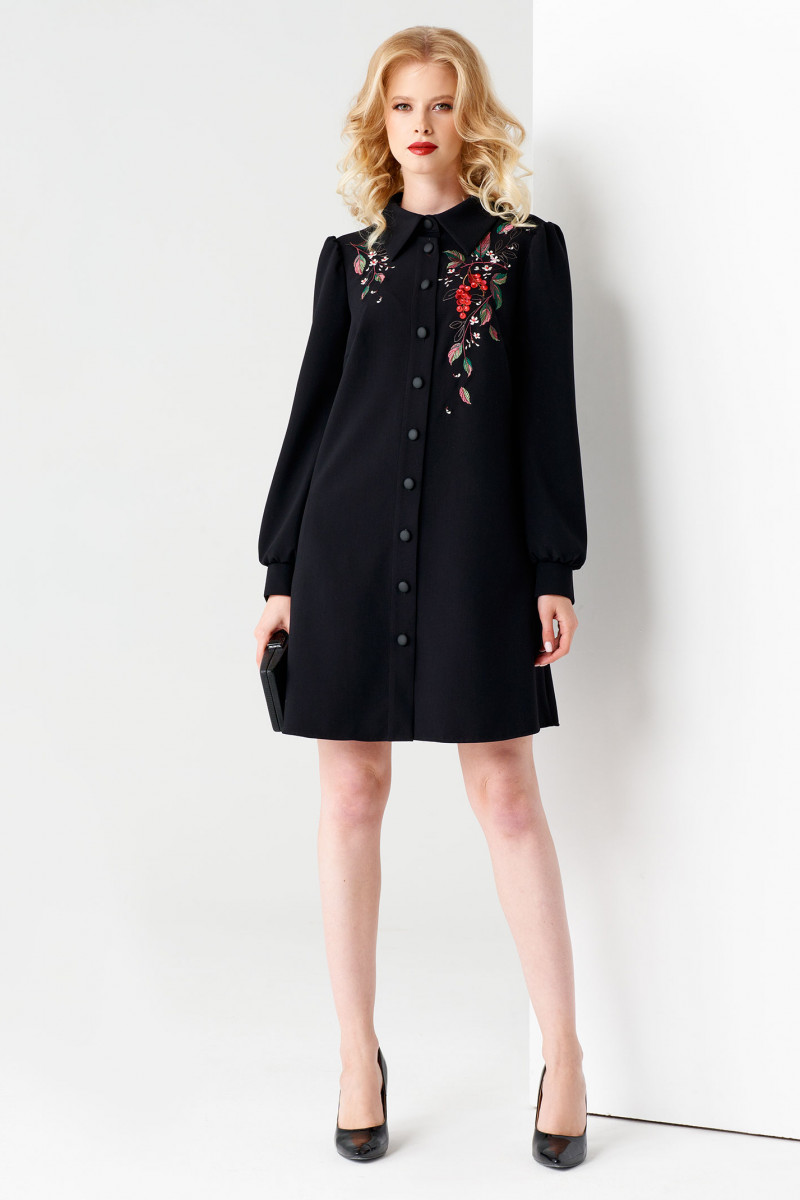 Изысканный, элегантный стиль этого платья, говорит сам за себя. Платье расширенного силуэта, с центральной планкой на петли пуговицы , с воротником, с нагрудными вытачками, акцент сделан на авторскую вышивку, в боковых швах расположены карманы. Спинка лаконичная. Рукава втачные, расширенные к низу, по окату и по низу сборка, с манжетом и пуговицами. Отличный вариант для торжества и на каждый день. Элегантный образ- классика всегда и везде, изящество, неповторимый шарм. Вы уже- идеал для подражания.