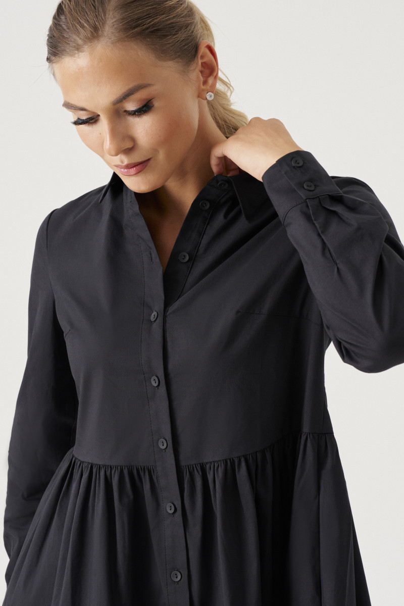 Романтичное платье, из хлопковой ткани, создаст стильный, свободный образ. Платье с воротником , с центральной планкой на петли пуговицы, с кокеткой , с горизонтальными подрезами и сборкой . Спинка с кокеткой , с отрезными воланами. Отличный вариант для выхода в свет и на отдых. Легкость, романтизм, грация-все это свойственно девушке, стоит ей лишь надеть это платье.