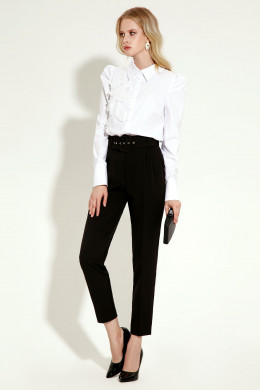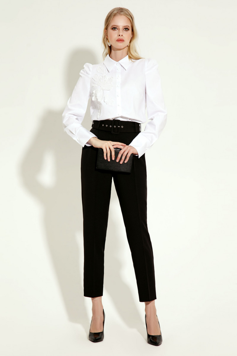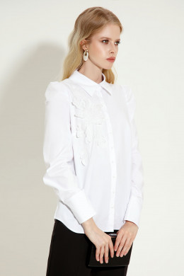Эффектная блузка из хлопковой ткани с дизайнерской вышивкой перестанет быть скучной, благодаря декору. Детали переда с нагрудными вытачками, с центральной застежкой на петли пуговицы, на правой детали авторский декор. Спинка лаконичная. Интересные , трендовые рукава со складками по окату , с притачными манжетами. Хороший вариант для офиса и выхода в свет, выглядит дорого и престижно.