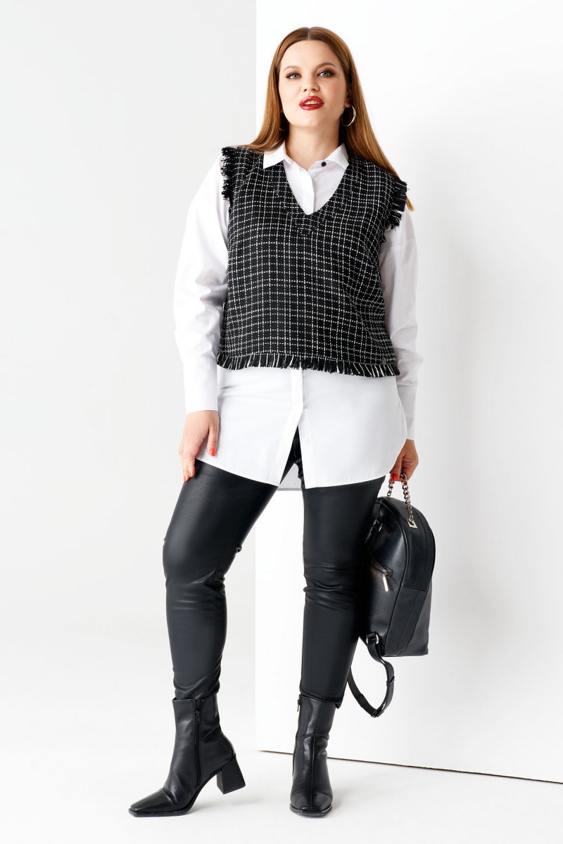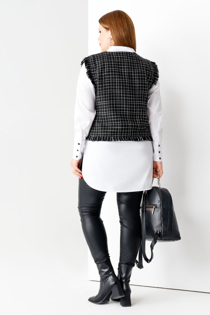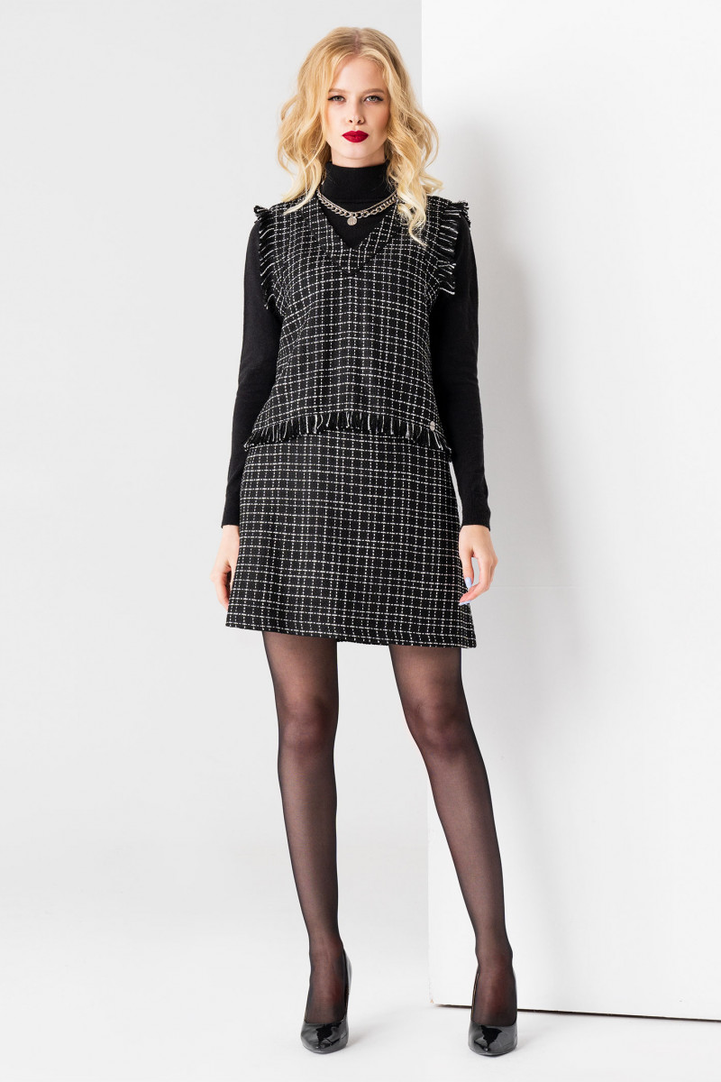 Стильная молодежная жилетка из ткани в клетку. Жилетка укороченная, с V-образным вырезом горловины. По низу жилетки и по проймам имеется отделка бахрома из основной ткани. Такая жилетка отлично сочетается с различными джемперами или рубашками, создавая стильный осенний образ.