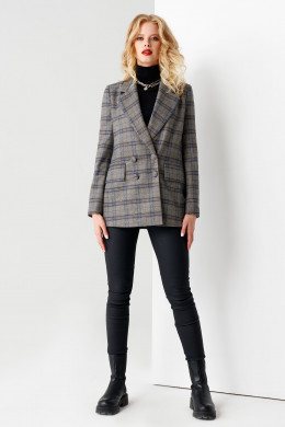 Элегантный и одновременно строгий, деловой жакет украсит ваш гардероб. Двубортный жакет женский Panda с английским воротником и двумя карманами с клапанами застегивается на пуговицы, обшитые основной тканью. Жакет в клетку женский создаст стильный образ с другими вещами в повседневном или деловом стиле.