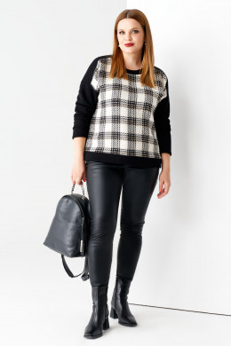 Девушки, предпочитающие уютную одежду, обязательно оценят трендовый джемпер. Модельеры предлагают интерестный вариант, вся изюминка в силуэте- это его лаконичность и сочетание однотонного трикотажа с факткрной полочкой. Джемпер длиной до линии бедер,по линии низа планка, со спущенной линией плеча, по горловине планка, рукава длинные. Удобная одежда из денима отлично подходит для городской, динамичной жизни.