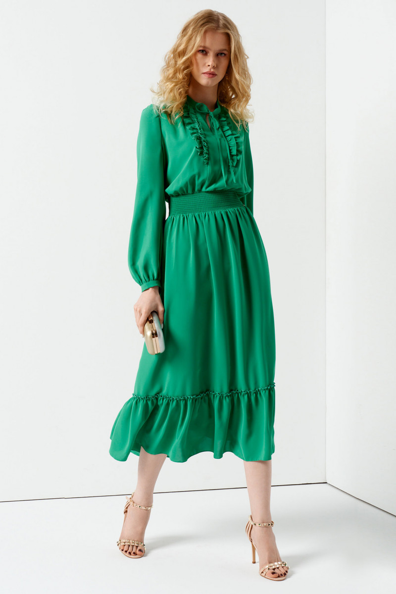 52Платье: Длина изделия - 129см, Длина рукава - 62см, Длина спинки до подреза - 38см, Обхват шеи - 47,6см, Ширина плеча - 11,2см, Ширина по бедрам - 82см, Ширина по груди - 59см, Ширина по талии - 44см, Ширина рукава - 19,6см;