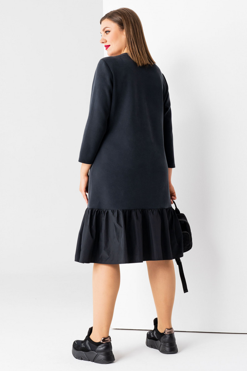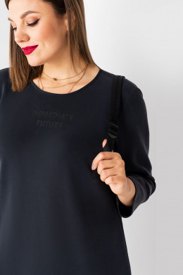 Лаконичное черное платье говорит само за себя из трикотажной, эластичной ткани, тактильно очень комфортное. Платье свободного силуэта, горловина круглой формы, по переду шрифтовая печать в тон ткани, по низу изделия волан, из ткани" мемори" отлично сохраняющий форму крвсиво драпирующийся . Спинка лаконичная, по низу изделия волан. Рукава длинные. Разнообразить лук помогут яркие аксессуары, хорошо комплектуются с кроссовками, босоножками.