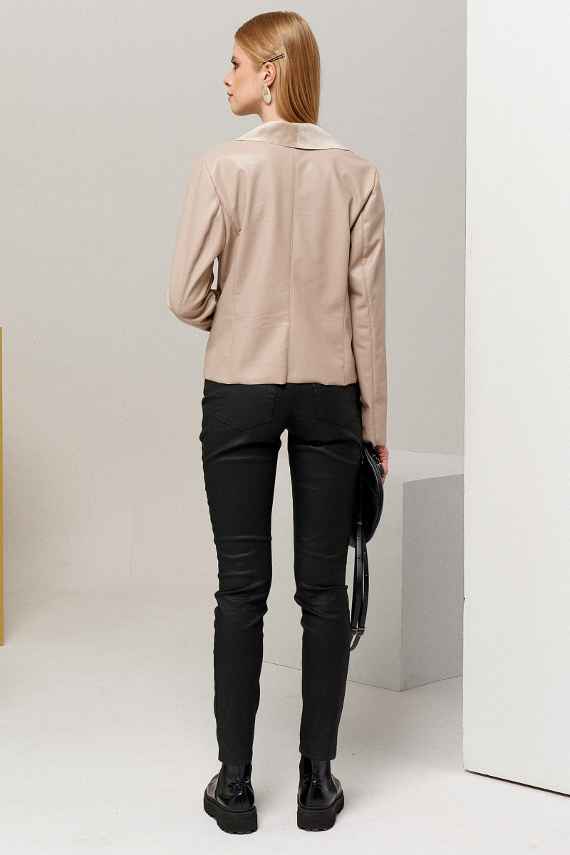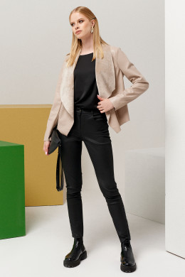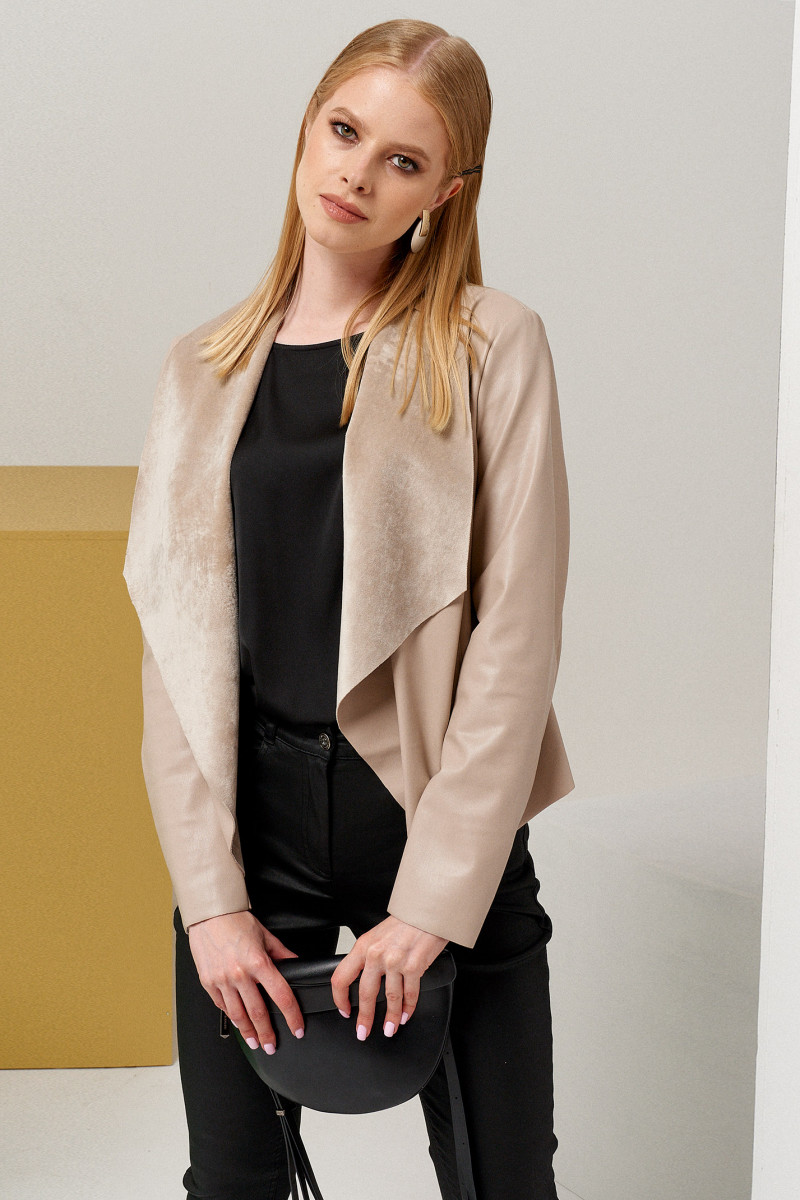 Стильный жакет из эко кожи. Жакет без застежки с длинными рукавами. По переду и по спинки имеются рельефные швы, которые обеспечивают отличную посадку по фигуре. Жакет отлично сочетается и с брюками и с джинсами, отличный вариант на каждый день.