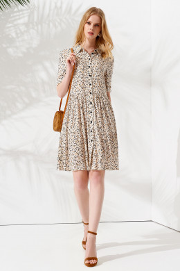 Легкое, будто невесомое молодежное платье идеально подчеркнет вашу точеную фигуру и утонченный вкус. Платье женское короткое, по длине едва доходит до колен. Воротник отложной, по всей длине спереди ряд пуговиц, что делает данную модель похожей на рубашку. Удобный рукав ¾ идеально дополняет модель. Выполнено платье мини летнее из вискозы, благодаря чему оно дарит комфорт даже в жаркие дни. Милая расцветка ткани с мелким цветным принтом легко комбинируется с однотонными аксессуарами. Вы можете заказать вискозное платье на лето уже сегодня.