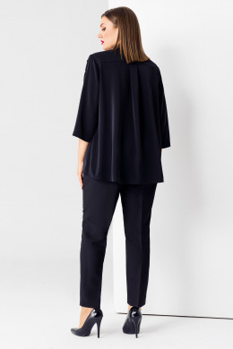 Очаровательная ,стильная и минималистичная блузка,выполнена из мягкой,струящейся ткани. Рубашечный воротник на стойке.Рукав втачной длиной 3/4 по центру декорирован функциональной застёжкой в виде планки с петлями и пуговицами.Планки укорочены относительно срезов ,к которым они притачены ,от того по низу рукавов и переда оформлены разрезы. По спинке выполнена отрезная кокетка и сборка .Спинка длиннее,чем перед,что позволяет визуально вытянуть фигуру и сделать её стройнее.Металлические пришивные пуговички по планкам выполняют также декоративную ифункцию и эффектно оттеняют блузку.Прекрасный вариант для стильной девушки как на каждый день,так и для работы в офисе.