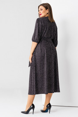 Эффектное платье из струящейся ткани, принт в горошек. Платье с V-образным вырезом горловины, с запахом, с рельефными швами, отрезное по линии талии, юбка поусолнце с перепадом длинны. Спинка отрезная, с рельефными швами. Рукава расширенные к низу, на резинке, юбка полусолнце. Элегантный, романтичный образ, всегда и везде, женственность, неповторимый шарм.