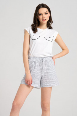 44Шорты: Высота посадки - 27см, Длина по боковому шву( шорты) - 35см, Длина по шаговому шву - 13см, Ширина брючин сверху - 69см, Ширина брючин по низу - 66см, Ширина по бедрам - 53см, Ширина по поясу - 33см;