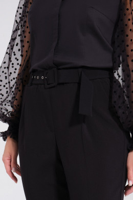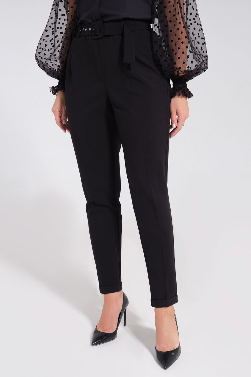 Стильные молодежные брюки из вискозной костюмной ткани. Брюки на талии на резинке. По поясу имеются шлевки, от пояса по переду маленькие декоративные складочки. По бокам карманы. Низ брюк с манжетами, брюки укороченные. Данные брюки дополнены съёмным поясом из основной ткани. Отличный вариант брюк для повседневных дней, в офис или для торжественных случаев.