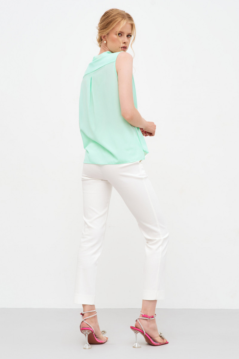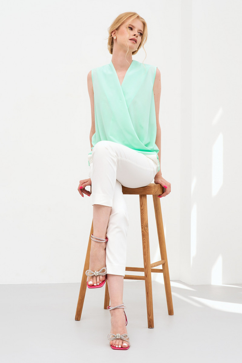 Летняя блузка для женщин – универсальный элемент для создания эффектных образов. Она невероятно легкая, практически не ощущается на теле. Чтобы вы ощущали комфорт даже в жаркую погоду, модельеры предусмотрели удобный крой. Блузка женская выполнена без рукавов, спереди – имитация декольте на запах. Такую модель можно сочетать с брюками любого кроя, бриджами, джинсами. Выполнена блузка из трикотажа, она обеспечивает свободную циркуляцию воздуха, не парит. Вы можете купить легкую летнюю блузку в двух базовых размерах – 42-48.