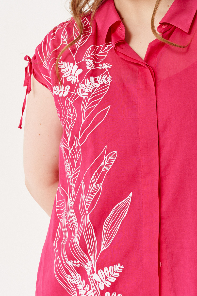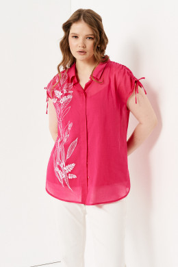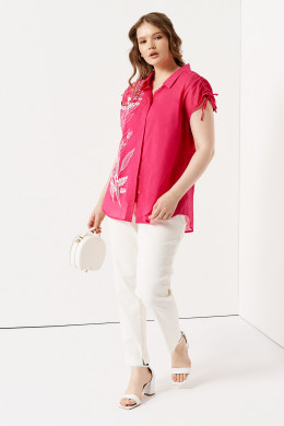Чтобы дополнить свой гардероб универсальной вещью, обратите внимание на комплект женский, состоящий из однотонной хлопковой туники и прозрачной блузки из вискозы на пуговицах. Оригинальный дизайн и исполнение модели покорит ваше сердце. Спереди блузка женская праздничная украшена вышивкой контрастного белого цвета в цветочном стиле. Она ассиметрична и расположена по правой стороне. Блузка с короткими рукавами, оканчивающимися завязками, кокетливо оголяют руки. Модель отлично сочетается с брюками. Вы можете купить комплект из блузки и туники для деловой встречи или торжественного мероприятия.