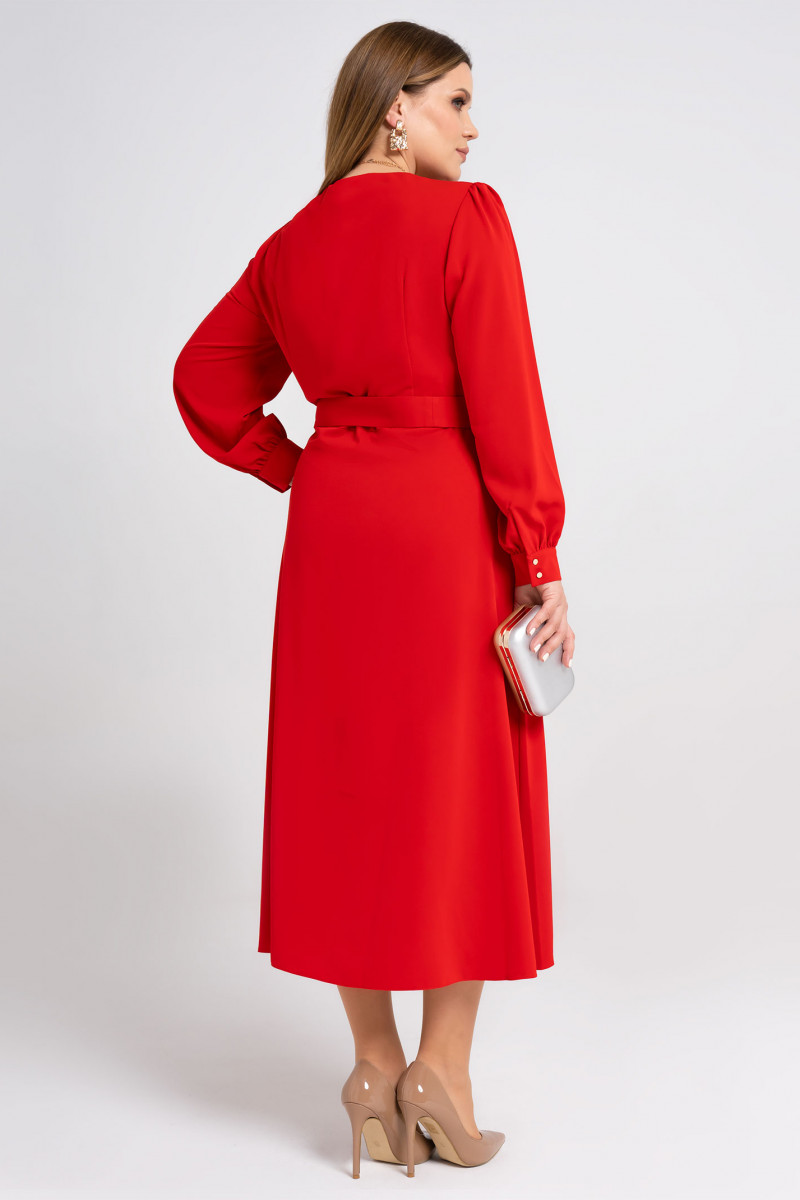 Эффектное платье из струящейся ткани. Платье с V-образным вырезом горловины, с запахом, с рельефными швами, отрезное по линии талии, юбка поусолнце с перепадом длинны, в боковом шве тесьма-молния. Спинка отрезная, с рельефными швами. Рукава расширенные к низу, с притачной манжетой, на петли пуговицы, по окату сборка, юбка полусолнце. Элегантный, романтичный образ, всегда и везде, женственность, неповторимый шарм. Пояс из основной ткани.