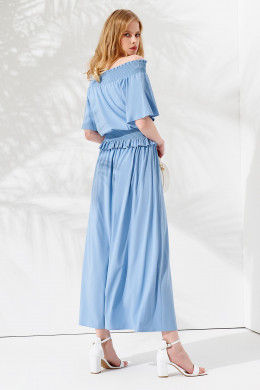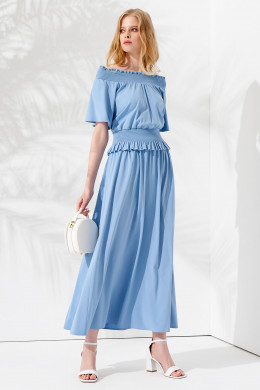 Комплект летний из блузы и длинной юбки решит извечную проблему с гармоничным сочетанием верха и низа. Женский костюм выполнен из вискозы, он легкий и струящийся. В нем можно отправиться на прогулку, в офис, на встречу или торжество. Блузка женская с рукавом-крылышком украшена по линии талии широкой резинкой. Аналогичная резинка проходит и по линии плеч, оголяя их. Блуза и длинная юбка, спадающая мягкими волнами, идеально сочетаются между собой. Вы можете купить костюм с юбкой праздничный в размере 42-48.