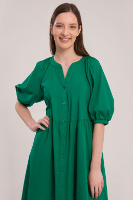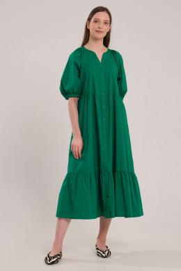 Хлопковое женское платье станет удачным выбором для теплого времени года. Оно отлично пропускает воздух, отводит влагу и дарит комфорт даже в солнечный летний день. По всей длине летнее женское платье дополнено пуговицами, рукава-фонарики оканчиваются резинкой. Свободный А-силуэт делает платье oversize подходящим вариантом для беременных девушек. Вы можете купить длинное платье для повседневной носки. Оно будет сочетаться с балетками, босоножками на каблуке, сандалиями.