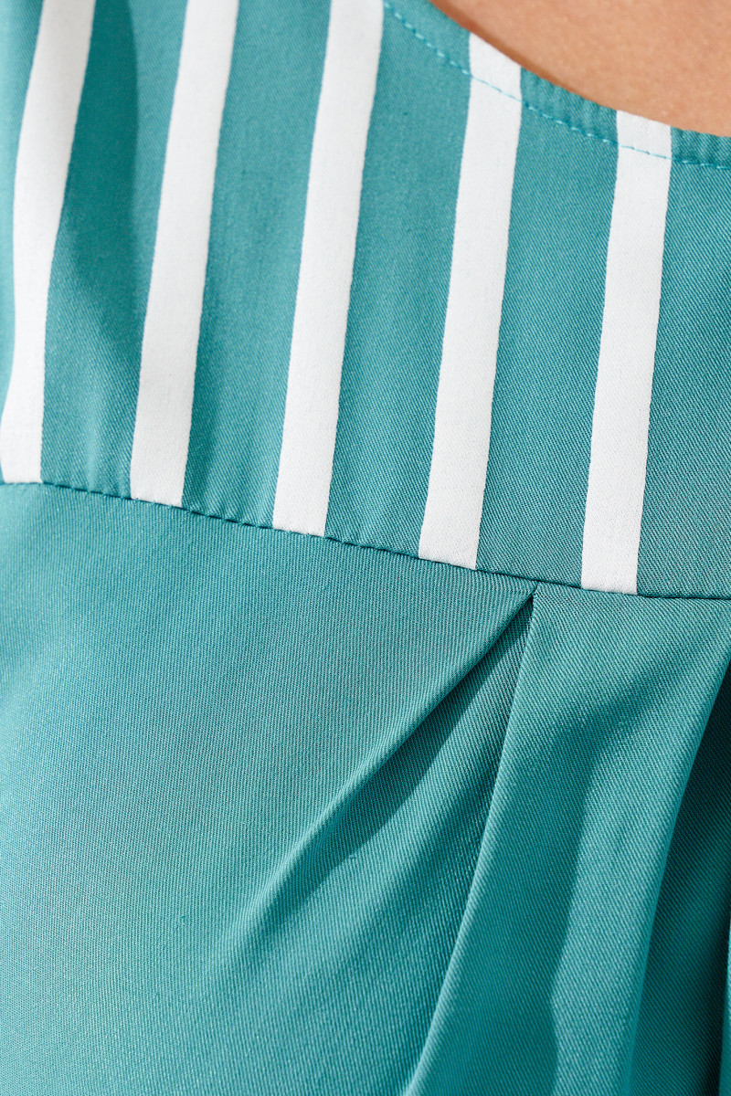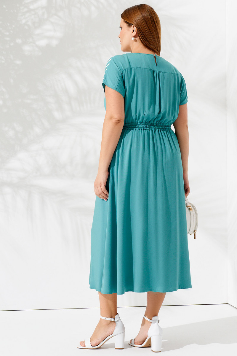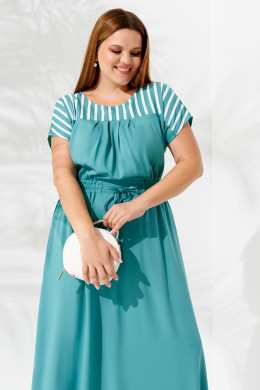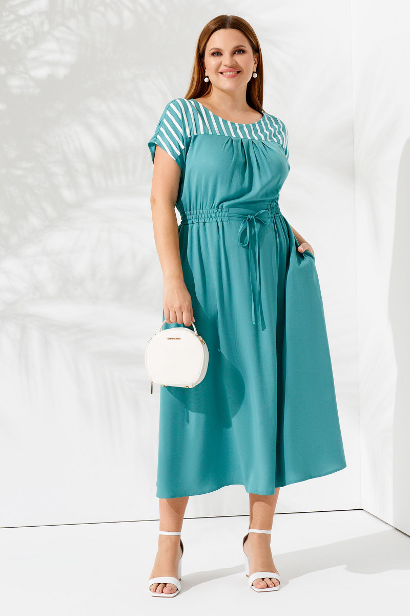 Летнее платье свободного кроя из вискозы от белорусского производителя Panda. Размеры от 48 до 56. Универсальная длина до середины икры, пояс с резинкой на талии, приспущенный короткий рукав. В верхней части вставка с контрастными белыми полосками. Вискоза отличается хорошим теплообменом, мягкая, приятная к телу ткань, не электризуется, не скатывается, не линяет и не выгорает. За счет свободного силуэта идеально подойдет женщинам, которые носят одежду больших размеров, беременным женщинам.