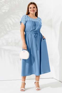 Летнее платье свободного кроя из вискозы от белорусского производителя Panda. Размеры от 48 до 56. Универсальная длина до середины икры, пояс с резинкой на талии, приспущенный короткий рукав. В верхней части вставка с контрастными белыми полосками. Вискоза отличается хорошим теплообменом, мягкая, приятная к телу ткань, не электризуется, не скатывается, не линяет и не выгорает. За счет свободного силуэта идеально подойдет женщинам, которые носят одежду больших размеров, беременным женщинам.