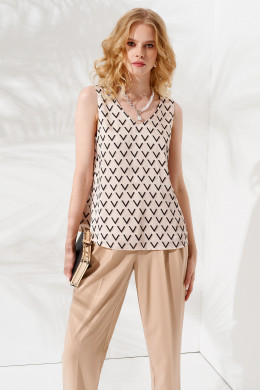 Теперь даже в жаркие дни вы будете чувствовать комфорт, если у вас будет трикотажная женская блузка с геометричным принтом. Она выполнена в виде майки на широких бретелях. Летняя блузка мягко струится о фигуре, зрительно делая фигуру стройнее. Нарядная майка дополнит офисный, повседневный и торжественный стиль. В ней вы сможете пойти на работу, в ресторан, на встречу с друзьями, свидание, на свадьбу подруги. Закажите элегантную женскую блузку в подходящем размере - пополните летний гардероб практичной вещью.
