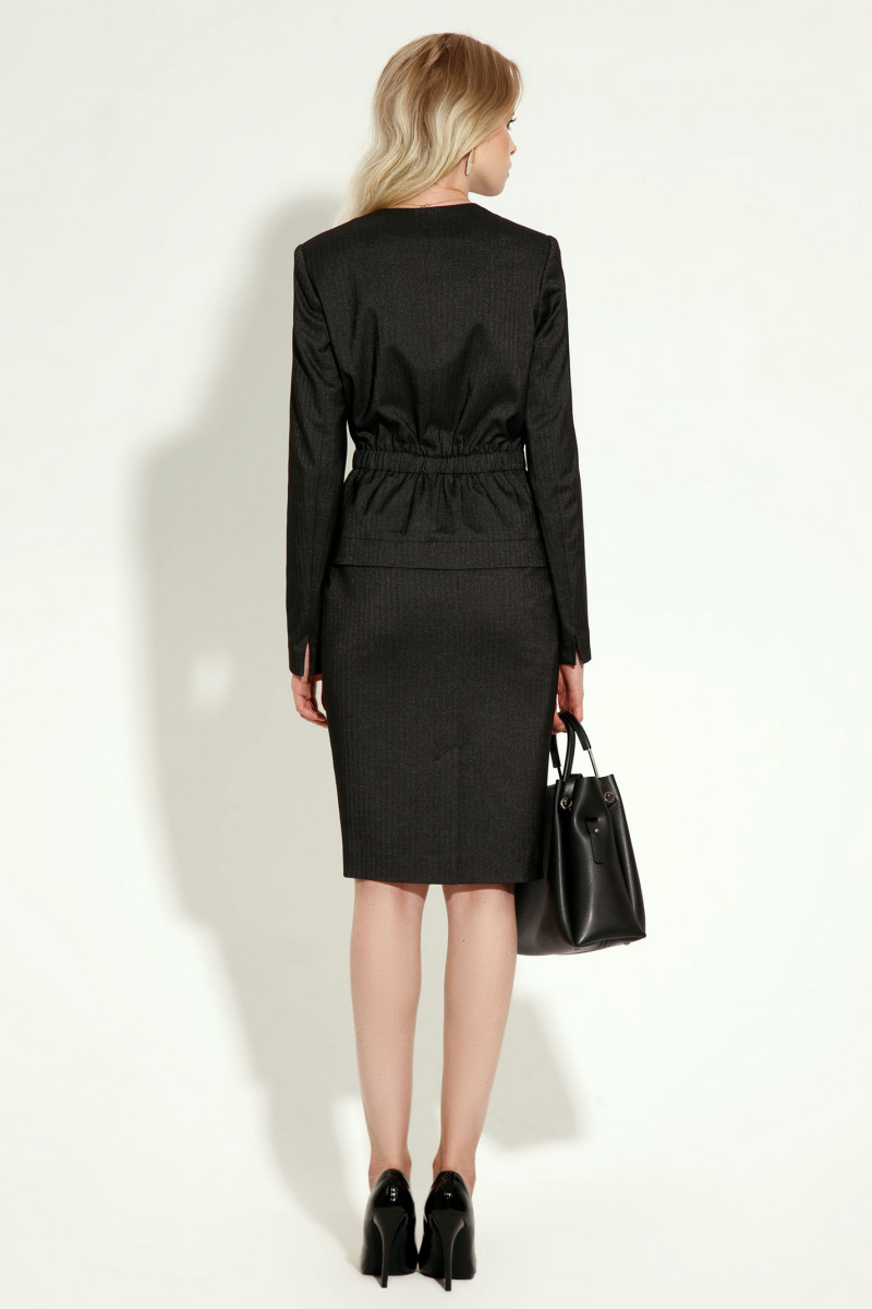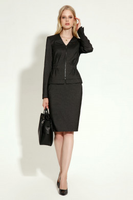 Стильный женский комплект из поливискозной ткани, состоящей из жакета и юбки. Жакет пролуприлегающего силуэта, с V-образным вырезом горловины, с центральной застежкой на металлическую молнию, с нагрудными вытачками, линия талии на резинке. Спинка со средним швом, по талии на резинку. Рукава втачные . Юбка лаконичная на поясе, на заднем полотнище средний шов с молнией. Этот стильный комплект вы можете одеть в самых разных ситуациях и будите выглядеть безупречно.